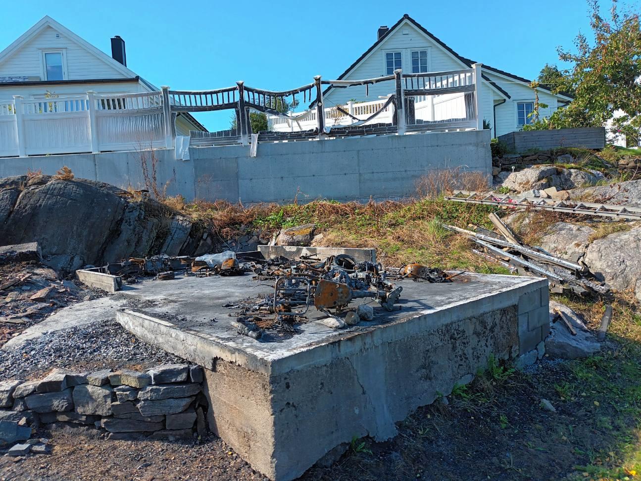 Våre levegger har en spesiell fordel ettersom PVC er brannhemmende. Hovedingrediensen i materialet er nemlig salt, som både er vanskelig å sette fyr på og som slutter å brenne så snart flammekilden fjernes. Skulle det oppstå en brann vil ikke leveggene våre bidra til brannspredning. Det er særlig en fordel på campingplasser, der vi dessverre har sett en rekke branner og branntilløp de siste årene. Bruk av levegger og rekkverk i PVC vil kunne ha en positiv effekt på risikoen for brannspredning. På bildet under ser du en branntomt der det har oppstått brann like ved et Vindex-gjerde. Deler av gjerdet har smeltet, men brannen har ikke spredd seg videre.