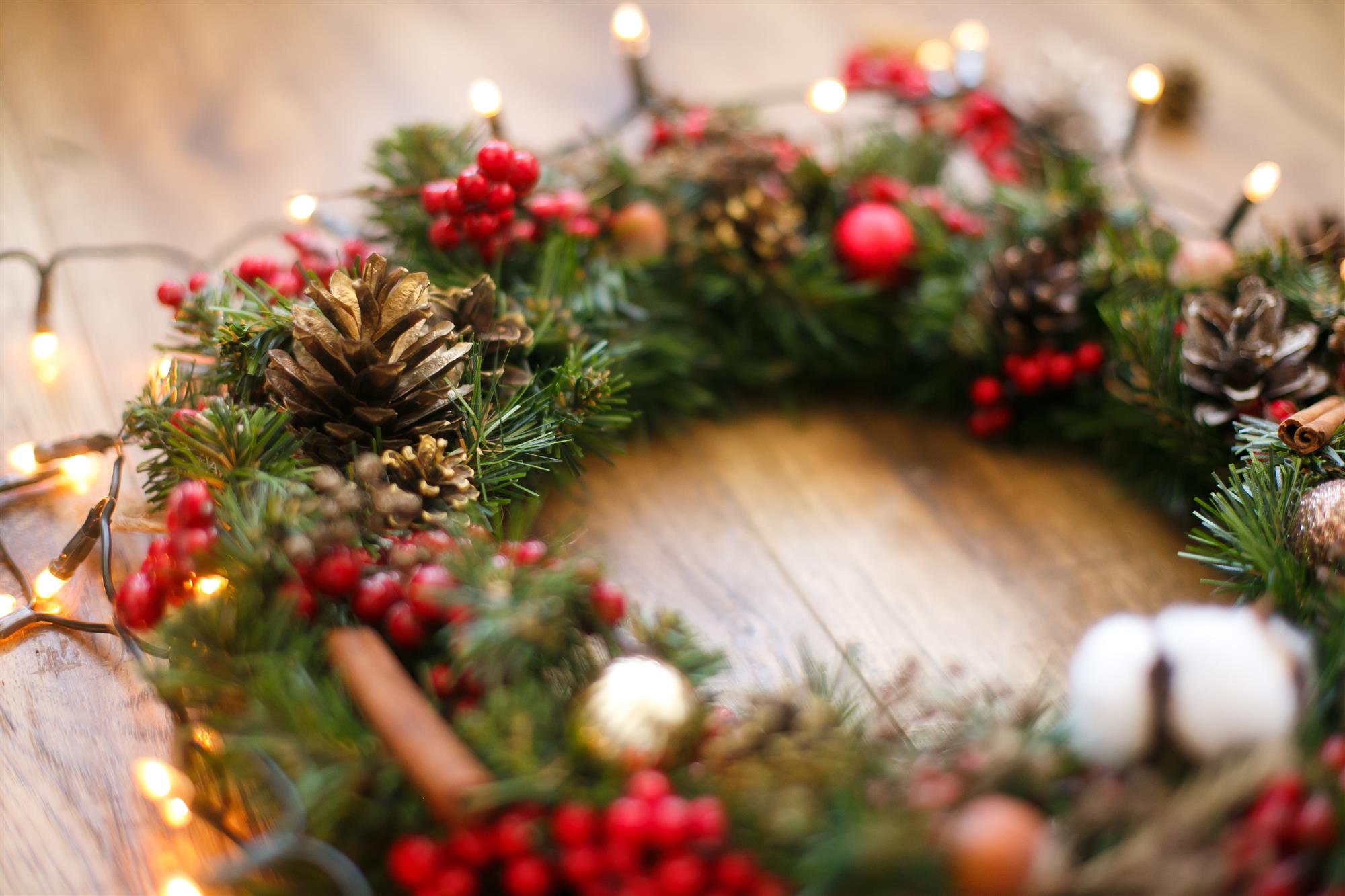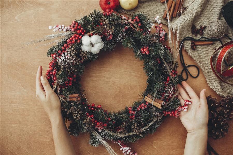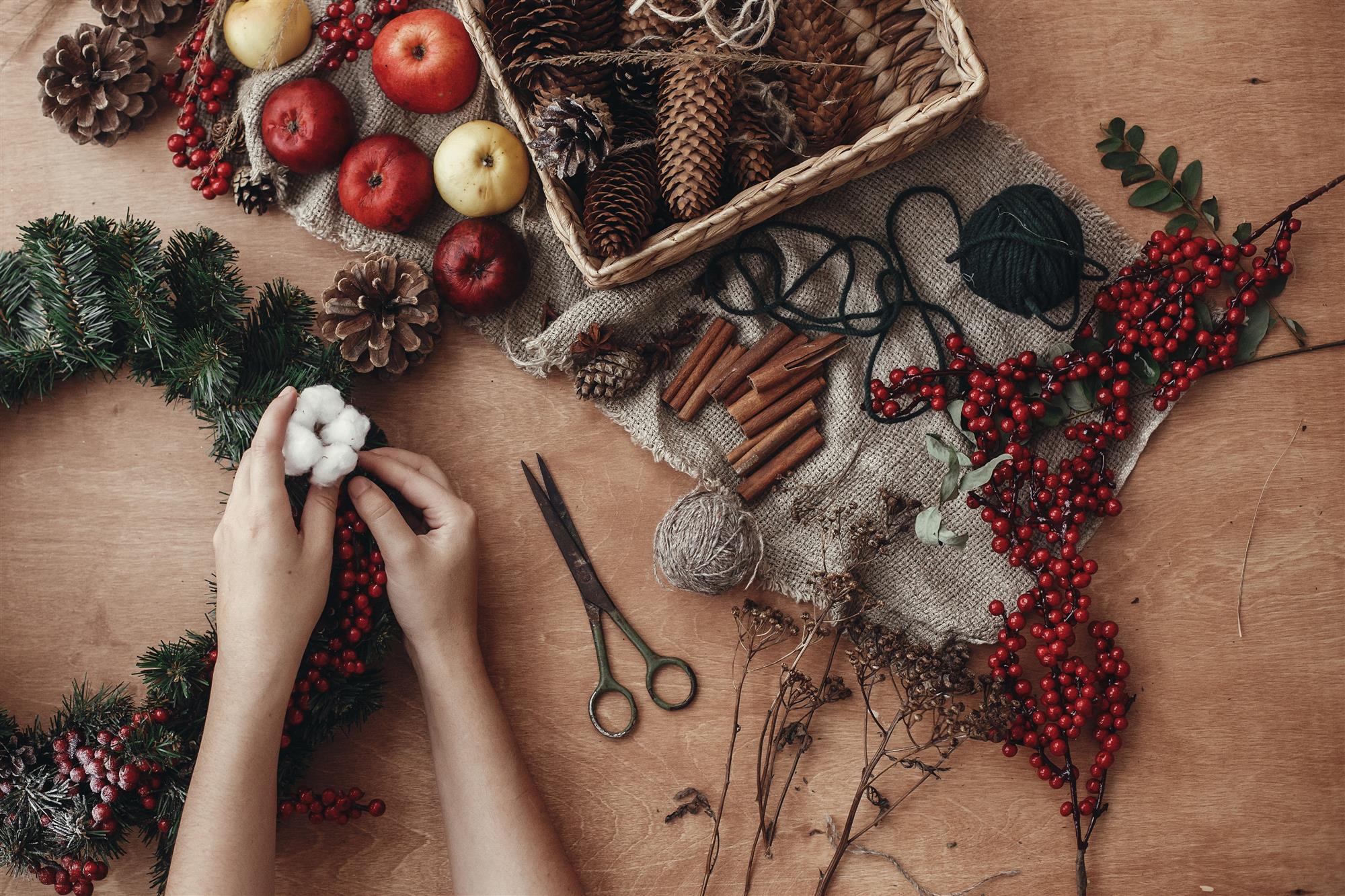 Noen foretrekker å ha en ren krans med kun ett materiale av gangen, mens andre får ikke nok variasjon. Er du av den siste typen kan julekransen eksempelvis pyntes ytterligere med både kongler, kvister, rongnebær, kanelstenger og tørkede blomster. For god orden underveis i kransbindingen kan det være en fordel å gruppere de ulike materialene i små hauger på bordet.