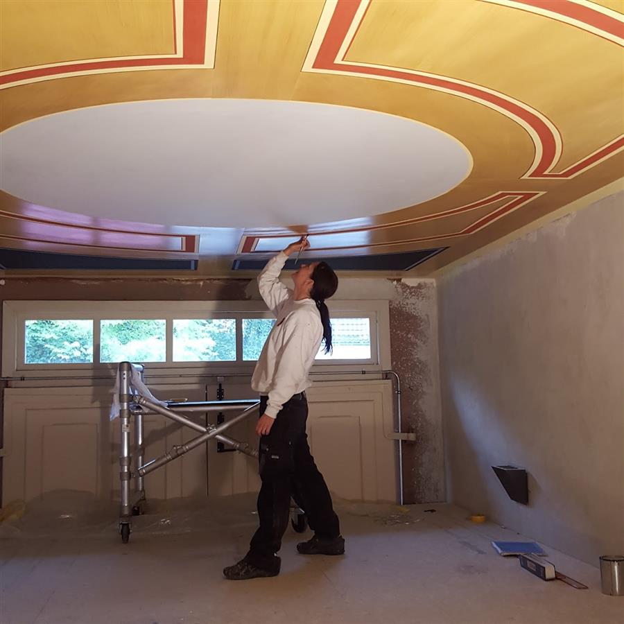 Jobben er veldig allsidig, alt fra å male og dekorere møbler, takmalerier, forandre farge, lage malerier på vegg, male logoer, skilt, blande og lage farger, gullforgylling ådring og marmorering. Monicas har stor passion for å restaurere og få bygninger og rom tilbake til opprinnelig byggeår.
