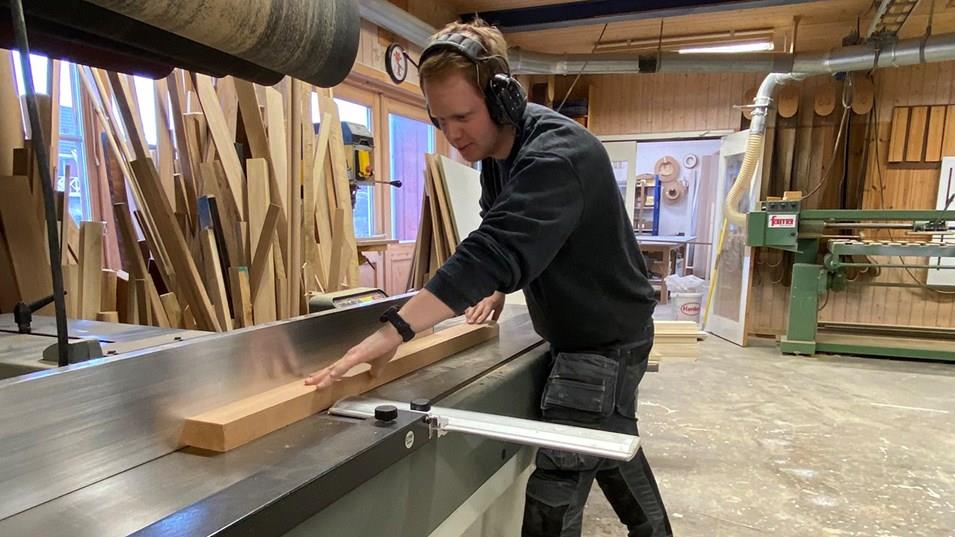 I åtte år har Per Kristian Kristiansen holdt til hos Engelsviken Snekkerverksted AS utenfor Fredrikstad. 25-åringen har svennebrev som møbelsnekker, og tar fagbrev som CNC-operatør. Akkurat denne kombinasjonen er det som gjør jobben hans så spennende, forteller han.