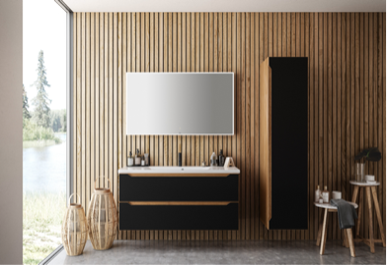 Linn Bad AS fra Vik i Sogn har sett en økende etterspørsel av baderom i naturmaterialer, og i det siste har en sort fargetrend vært særlig populær. For å utnytte overskuddsmaterialet fra eika som et bærekraftig tiltak, er baderomsinnredningene SELMA videreutviklet i sortlakkert eik, og EMMA i sort matt. Resultatet er mindre svinn og flere fornøyde kunder.