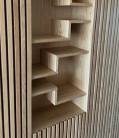 - Dette er alt fra store innredninger i offentlige bygg, vakre trapper i moderne boliger, eller formskapte bokhyller. Så lenge noe kan tegnes, kan det lages i tre, sier Wibe.