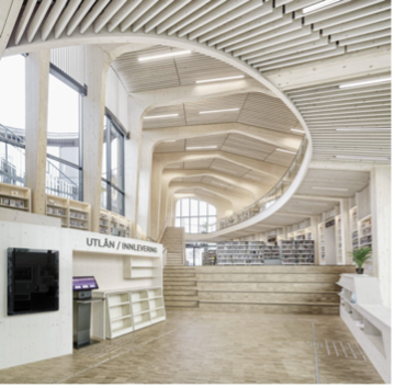 Til biblioteket i Nord Odal har designfabrikken Henriksen Snekkeri produsert all innredning. Spilehimlingen består av ca. 5000 individuelt utskårede spiler lagd i heltre, av norsk gran. Én og én er disse produsert og satt sammen etter arkitektens 3D-tegninger. Hele bygget, inkludert den 700 kvadratmeter store himlingen, er formet som et sneglehus. Ved hjelp av store, 5-aksede CNC-maskiner er de bølgende elementene modellert i 3D. Hver eneste spile har sin egen datategning.